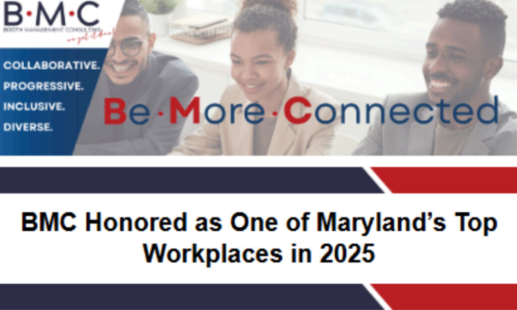 Booth Management Consulting, LLC (BMC) has been named one of Maryland’s 2025 Best Companies to Work for by The Daily Record. This recognition, based on employee feedback, reflects BMC’s commitment to fostering a supportive, inclusive workplace where people grow, succeed, and deliver meaningful impact.