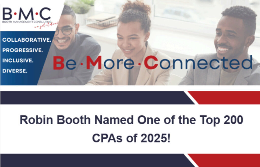 Booth Management Consulting proudly celebrates Principal and Founder Robin Booth’s recognition as one of Forbes’ Top 200 CPAs of 2025. This national honor highlights her exceptional leadership, technical expertise, and commitment to advancing the accounting and consulting profession.